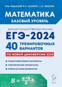 40 новых авторских тренировочных вариантов, составленных по проектам спецификации и демоверсии ЕГЭ 2024 года (базовый уровень), опубликованным на сайте ФИПИ (www.fipi.ru) 25.08.2023;