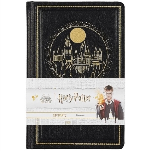 Блокнот А5 192стр Гарри Поттер Хогвартс цветной блок обложка из черной кожи с золотым тиснением