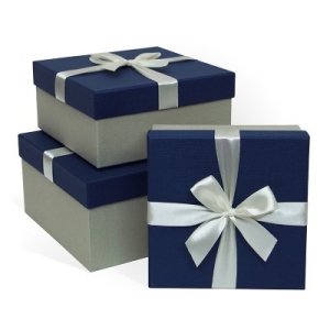 Коробка подарочная с бантом 190x190x90 Синий-серый