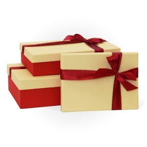 Коробка подарочная с бантом 250x170x60 Слоновая кость-красный