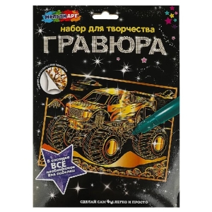 Гравюра золотая 18х24 см монстртрак