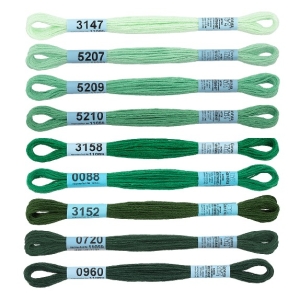 Нитки для вышивания набор мулине №10 хлопок 9 цв 8м зеленый