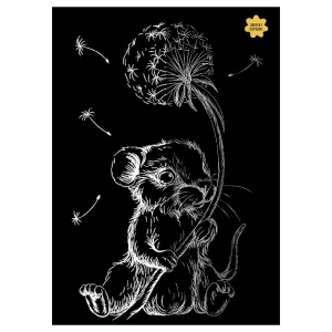 Гравюра А4 с эффектом серебра Мышка с одуванчиком