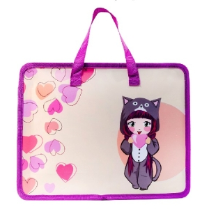 Папка для тетрадей А4 на молнии с ручками Девочка-кошка пластик