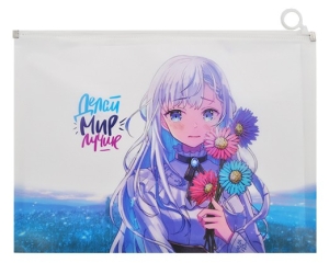 Папка на молнии А4 32.5х24.5 см Аниме белый пластик с рисунком