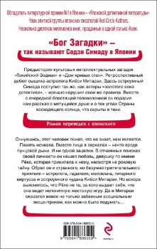 Предыстория культовых интеллектуальных загадок «Токийский Зодиак» и «Дом кривых стен». Ретроспективный дебют сыщика-астролога Киёси Митараи. Здесь остроумный Симада поступил так же, как авторы «золотого века детектива», — изящно нарушил свои же правила. Вместе с очередной блестящей головоломкой он подарил нам рассказ о мятущейся душе и о тех углах Страны Восходящего Солнца, что скрыты в тени.
