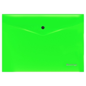 Папка-конверт на кнопке А4 200мкм прозрачная зеленый неон