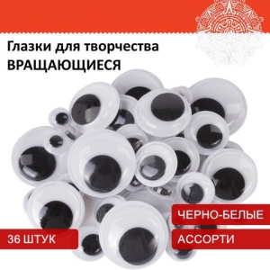 Глазки для творчества вращающиеся черно-белые ассорти 36 шт