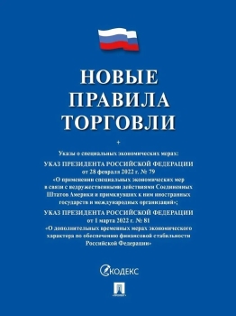 В сборник включены основные нормативные акты, регулирующие отношения, возникающие между продавцом и покупателем и определяющие требования в области продажи товаров, в том числе Указы Президента Российской Федерации от 28 февраля 2022 г. № 79 «О применении специальных экономических мер в связи с недружественными действиями Соединенных Штатов Америки и примкнувших к ним иностранных государств и международных организаций» и от 1 марта 2022 г. № 81 «О дополнительных временных мерах экономического характера по обеспечению финансовой стабильности Российской Федерации». В настоящем издании нормативные документы приводятся с учетом изменений, принятых нормативными актами, опубликованными на дату подписания издания в печать. Для широкого круга читателей.