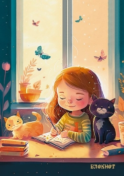 Блокнот на гребне А6 48л клетка Девочка с котятами