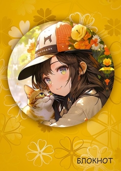 Блокнот на гребне А6 48л клетка Девочка с котенком