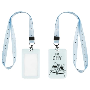 Бейдж вертикальный 110*70 мм Cat day лента с карабином