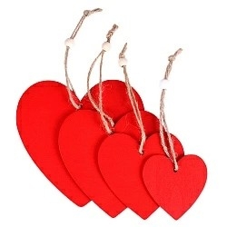 Подвеска деревянная Сердце 4шт красные и белые