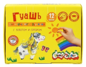 Краска гуашь 17,5мл 12 цв золото и серебро