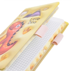 Блокнот А6 формата с красочной пухлой обложкой, 2-мя петельками для ручки. Цветной срез, ляссе(закладка-тесьма). Количество листов:80. Графление-клетка. Размер блокнота: 11*16см. Упаковка: пакет.