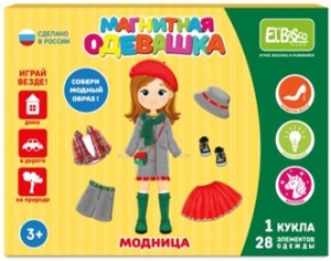 "Магнитная игра-одевашка «Модница» - увлекательное занятие для вашего ребенка. Фигурка куколки с огромным гардеробом. Предложите малышу одеть куклу самостоятельно. Подскажите, какую часть гардероба нужно надевать на ножки, на ручки, на голову. Затем предложите малышу собрать куклу на праздник или на прогулку.