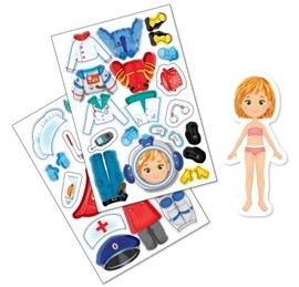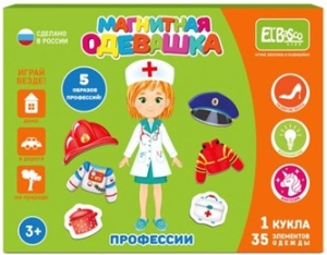 "Магнитная игра-одевашка «Профессии» - увлекательное занятие для вашего ребенка. Предложите малышу одеть куклу самостоятельно. Подскажите, какой наряд подходит космонавту, а какой врачу.