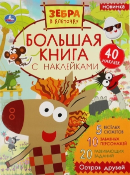 Большая книга с наклейками «Зебра в клеточку. Остров друзей» ТМ «УМка» станет для ребёнка отличным вариантом для интересного досуга: