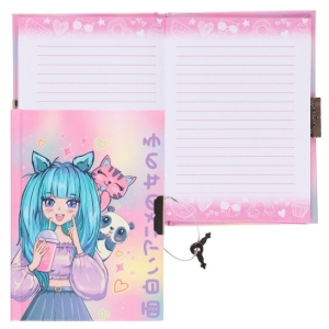 Книжка записная А6 56л линия Anime Girl на замке тв обложка