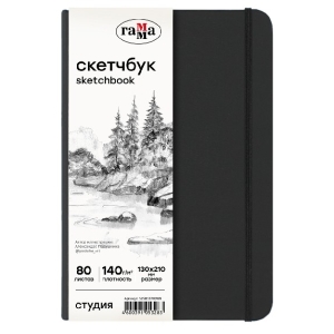 Скетчбук 80л 130*210 черный на резинке блок белый 140 г/м2
