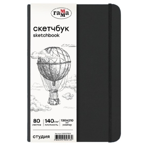 Скетчбук 80л 130*210 черный на резинке блок слон кость 140 г/м2