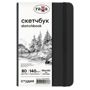 Скетчбук 80л 90*140 Студия черный на резинке блок белый 140 г/м2