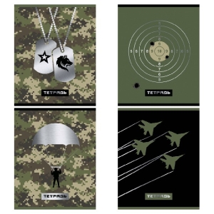 Тетрадь BG серии «Military» формата А5 (165*205 мм) на гребне состоит из 96 листов и отлично подходит для конспектов, работы, больших записей и домашних заданий. Внутренний блок – офсетная бумага плотностью 60 г/м?, белизна – 100%, линовка – клетка с полями. Обложка тетради изготовлена из мелованного картона с использованием матовой ламинации и металлизированным пантоном.
