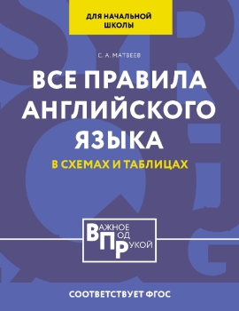 Пособие «Все правила английского языка для начальной школы в схемах и таблицах» подходит для подготовки учащихся начальной школы к самостоятельным, контрольным работам, а также к ВПР. Материал удобно структурирован по темам, которые изучают в начальных классах, поэтому им легко и удобно пользоваться. Все правила представлены в наглядных схемах и таблицах, благодаря чему школьник сможет быстро повторить пройденные темы, используя пособие как справочник, учебник или шпаргалку. Книга адресована учащимся начальной школы, их родителям и учителям.