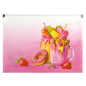 Папка конверт на молнии А4 Фруктовые Милкшейки