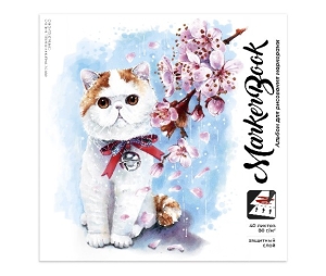 Альбом для рисования маркерами 195х195 мм 40л 80 г/м Весенний кот клеевое скрепление