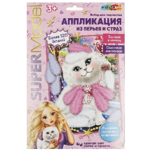 Аппликация из перьев и страз 17x23 см Стильная кошка