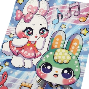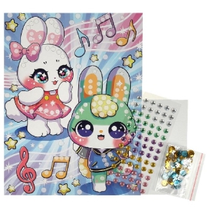С помощью этого набора юный художник сможет самостоятельно создать сверкающую аппликацию с изображением милых зайчиков. Готовую поделку можно подарить близким или использовать для украшения интерьера.