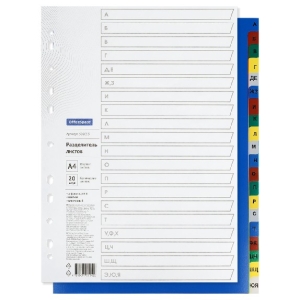 Разделитель листов А4 20л алфавитный А-Я цветной пластиковый
