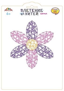 Набор состоит из: Пенопластовой доски, размером 14.5*14.5 см, разноцветных ниток, и пластмассовых булавок. Рекомендованный возраст от 6 лет. С помощью безопасных пластмассовых булавок ребёнок по схеме соединяет цветные нити, тем самым формируя объёмный рисунок."