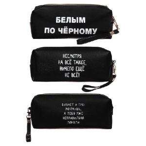 Пенал-косметичка Белым по черному 21,5x8x5 см искусств кожа