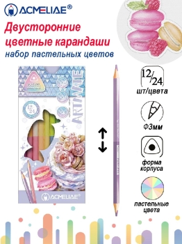 Карандаши 24 цв 12шт двусторонние пастельные Pastel Artmate