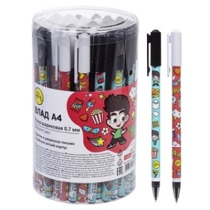 Ручка шар синяя 0,7 мм Влад А4 с клипом корпус с рисунком