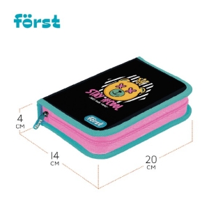 Каркасный пенал Forst помогает школьнику хранить канцелярские принадлежности в одном месте. Изделие размером 200*140*40 мм не занимает много места в рюкзаке. В одно отделение помещается 25 предметов. За счёт креплений-резиночек для канцтоваров внутри пенала легко поддерживать порядок. Одна откидная планка увеличивает вместимость изделия и позволяет всегда держать расписание уроков перед глазами. Благодаря крупному резиновому бегунку ребёнку удобно открывать пенал на молнии.