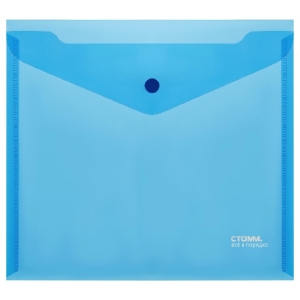 Папка-конверт на кнопке А5+180мкм прозрачная синяя