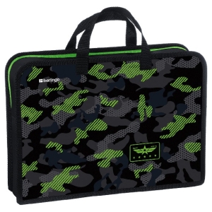 Папка с ручками А4 1отд Black and green пластик на молнии
