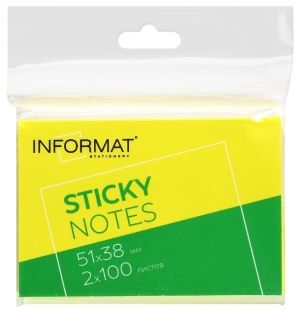 Блок самоклеящ 51х38 мм 2шт 100л желтый неон