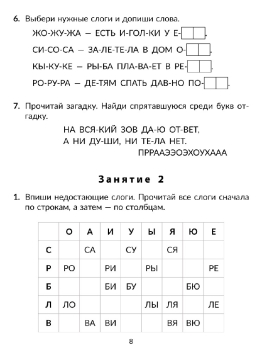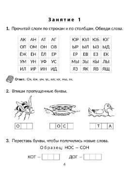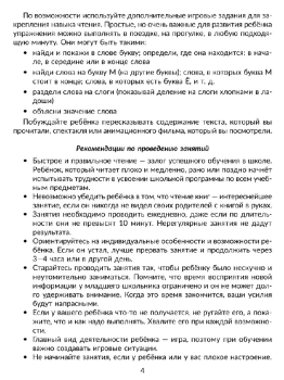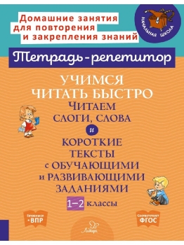 Книга адресована заботливым родителям для домашних занятий с младшими школьниками, которые знают буквы, научились читать, но им необходимо увеличить скорость осмысленного чтения. Рабочая тетрадь состоит из 30 занятий, цель которых научить ребёнка читать бегло и правильно. Выполняя с ребёнком задания, родители смогут повторить с ним изучаемый в школе учебный материал. Предлагаемые упражнения развивают умения и навыки, которые необходимы каждому ученику. Это, прежде всего, навыки, необходимые для чтения, а также для развития внимания, памяти, увеличения словарного запаса. Все слова, предложения и тексты в тетради разделены на слоги. Половина занятий построена на чтении слогов и слов, разделённых на слоги. Вторая часть книги отведена для чтения коротких текстов. Вначале каждого занятия дана слоговая разминка–упражнения, которые подготавливают ученика к чтению маленького рассказа. К каждому тексту приведены вопросы и задания. Чтобы ответить на вопрос по содержанию, ученику необходимо обращаться к тексту. Чем чаще ребёнок обращается к тексту, тем быстрее закрепляется навык чтения. Поэтому в конце занятия полезно прочитать текст повторно – скорость и качество чтения будут уже гораздо выше. В книге приведены также дополнительные игровые задания для закрепления навыков чтения – эти простые, но важные для развития ребёнка упражнения можно выполнять в поездке, на прогулке – в любой подходящий момент. На все задания в книге есть ответы – это удобная возможность для родителей быстро проверить ученика или направить его к правильному ответу. Для родителей есть полезные памятки, а также в приложении указаны нормы техники чтения по ФГОС для 1 – 2 классов.