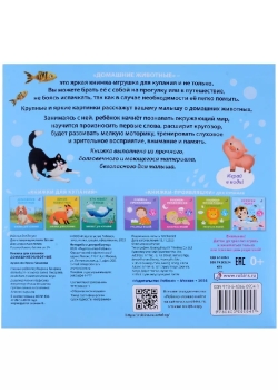 «Домашние животные» – это яркая книжка-игрушка для купания и не только. Вы можете брать её с собой на прогулку или в путешествие, не боясь испачкать, так как в случае необходимости её легко помыть.