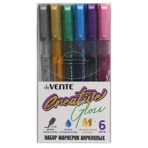Маркеры акриловые набор 6 цв METALLIC пулевидный наконечник