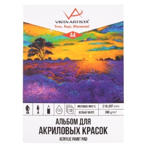 Альбом для акриловой живописи А4 12л 360 г/м2 склейка среднезернистая