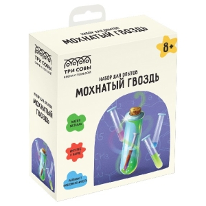 Подготовка опыта «Мохнатый гвоздь» не займет много времени и не потребует усилий. В набор входит: вода очищенная, кристаллические соли, пластик. В процессе опыта вы увидите, как поместив гвоздь в солевой химический раствор, он станет «мохнатым». Подробная инструкция с указанием техники безопасности и пошаговыми действиями входит в состав набора.