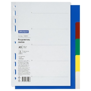 Разделитель листов А5 5л без индексации цветной пластиковый