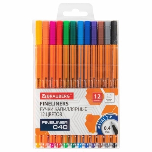 Ручки капиллярные 12 цв FINE 040 шестигранные 0,4 мм