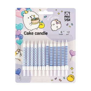 Свечи для торта с держателями 12шт Blue pattern ассорти 6 см