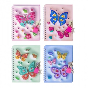Блокнот 11 см * 15 см 48л клетка Объемные бабочки ассорти гребень замочек